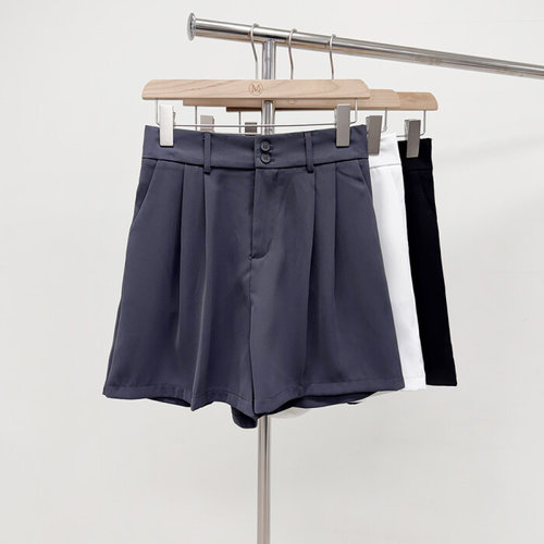 미즈큐즈 / 쿨 썸머 뒷밴딩 하이웨스트 투버튼 핀턱 4부 슬랙스