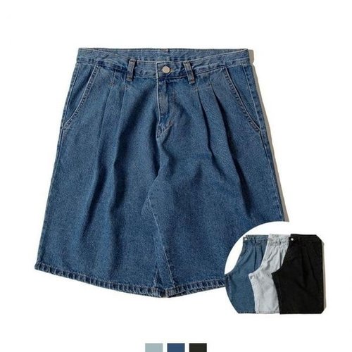 [셀러허브_여성트랜드패션]5부 데님 남성 청 통 청반바지 워싱진 워싱 와이드 롤업팬츠 반 와이드핏