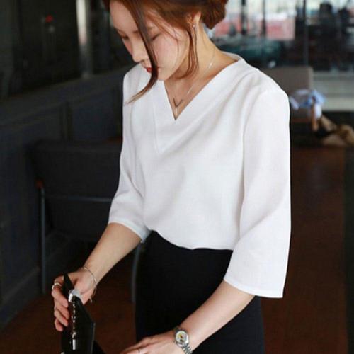 [오너클랜]인기상품 7부 브이넥 블라우스 데일리 캐주얼 여자 셔츠 [WFD6BB6_260404]