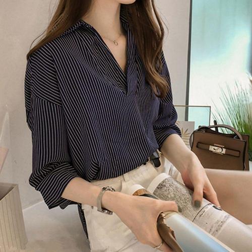 [오너클랜]인기상품 7부셔츠 브이넥카라 여성 남방 스트라이프 블라우스 [WFHQ9YZ_260405]