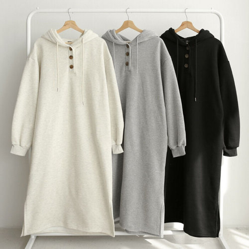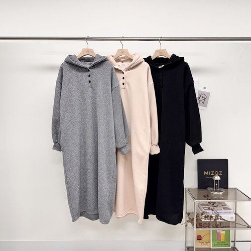 미즈큐즈 / (55-88까지) 후드 단추 겨울 기모 롱 원피스 빅사이즈
