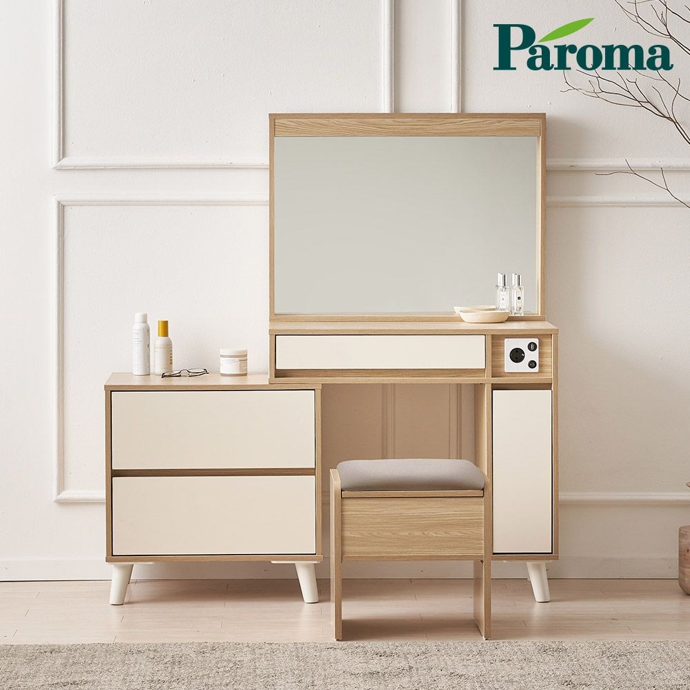 [리뷰이벤트] 파로마 코니2 라운드 거울 틈새수납장 틈새화장대 스툴세트