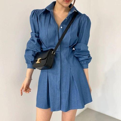 [오너클랜]인기상품 여성 A라인 퍼프소매 카라 미니원피스 뒷밴딩 허리라인 3색 [WFJLX1J_251119]
