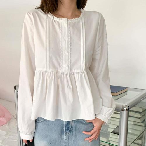 [미라클세븐]여성 코튼 단색 레이스 A라인 플레어 셔츠