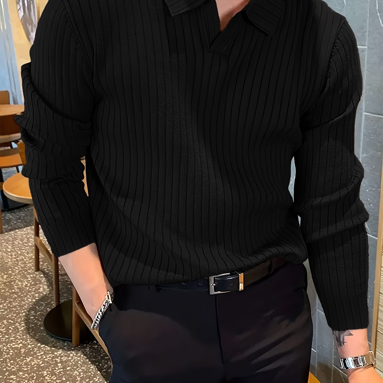 TEMU 남성용 겨울 신상 따뜻한 니트 셔츠 긴팔 상의, 리브드 니트 소재, 클래식 V넥 디자인, 다양한 컬러, 솔리드 컬러 심플 스타일, 부드럽고 피부 친화적인 소재, 데일리 커뮤트, 주말 데이트 및 다양한 행사에 적합