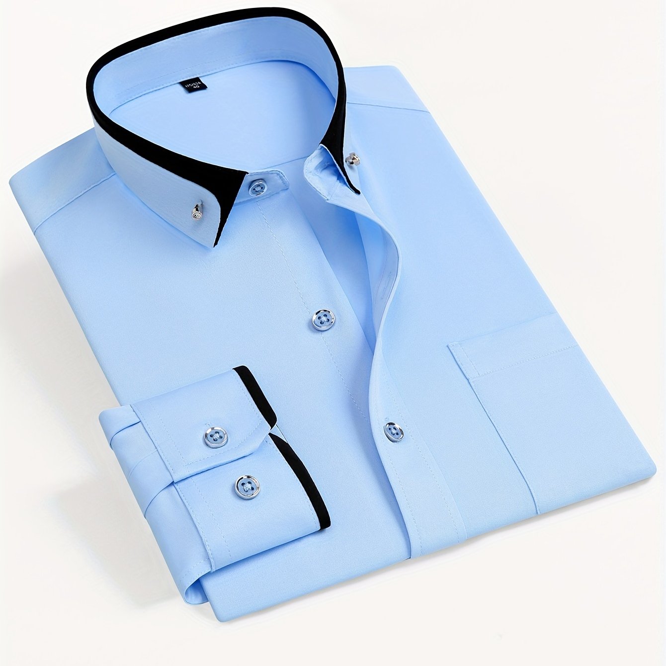 TEMU 남성용 / 버튼 칼라 & 커프가 있는 셔츠 - 싱글 브레스티드 롱 슬리브 테일러드 비즈니스 캐주얼 재킷 스타일 버튼 프론트 코트 (벨트/넥타이 미포함) - 세탁기 사용 가능 봄/가을 정장 & 세미 정장