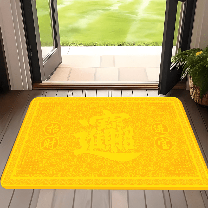 TEMU 홈 데코에 적합 - 두꺼운 부드러운 노란색 부자 프린트, 세탁기 사용 가능한 현관, 침대 & 소파용 바닥 매트, 내구성 있는 부자 문 장식