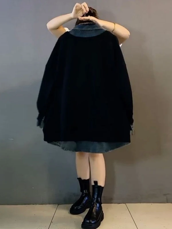 TEMU 플러스 사이즈 - 곱슬머리/솔리드 컬러 셔츠 원피스/스타일리시 여성 의류