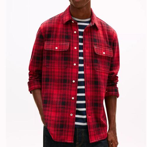 [해외배송] 타미 남성 레귤러핏 플레이드 자쿼드 니트 셔츠 Red