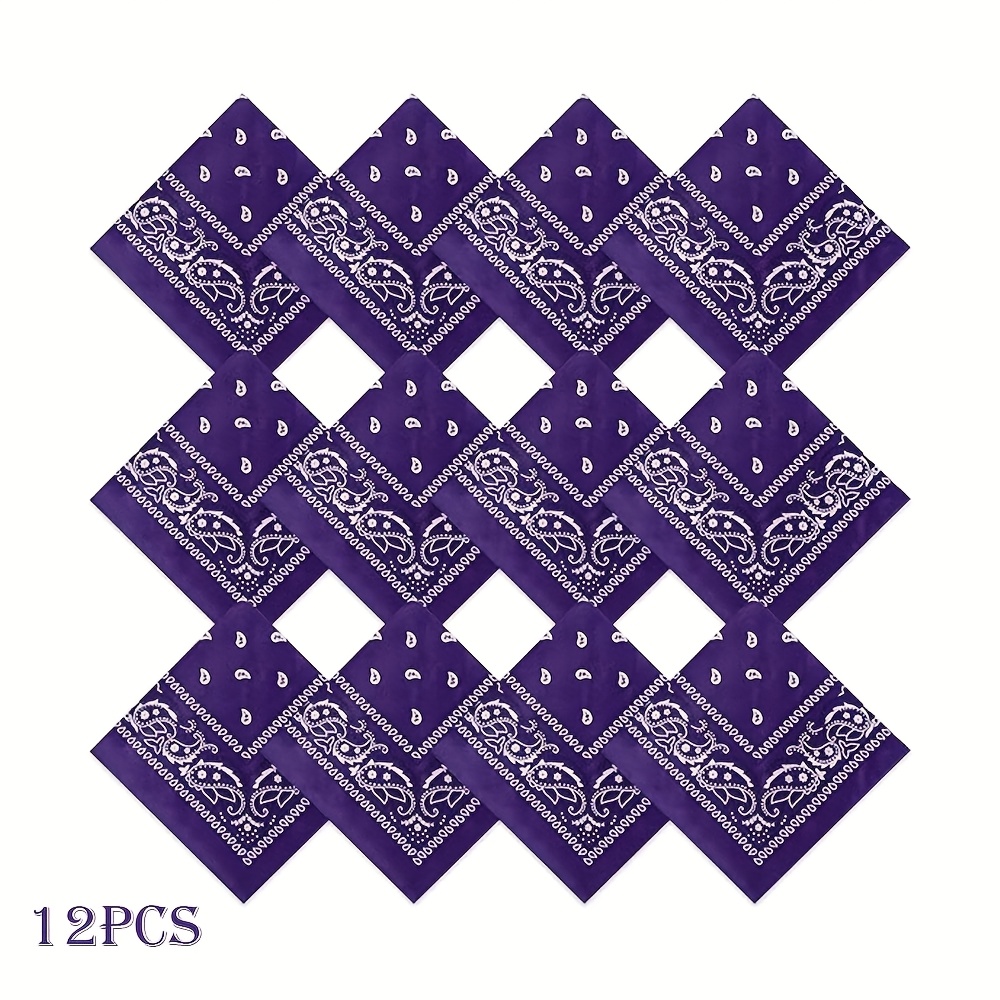 TEMU 12pcs 대형 22x22" 보라색 파이즐 밴다나 - 남성 및 여성용 세련된 헤드스카프, 내구성 있는 폴리에스터, 기계 세탁 가능, 가우보이 및 서부 스타일, 축제용 액세서리|파이즐 패턴|텍스처
