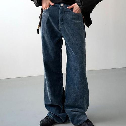H스타일(JN)3062벨벳청와이드데님팬츠 겨울 여성 벨벳 청바지 밴딩팬츠 데님팬츠 와이드팬츠