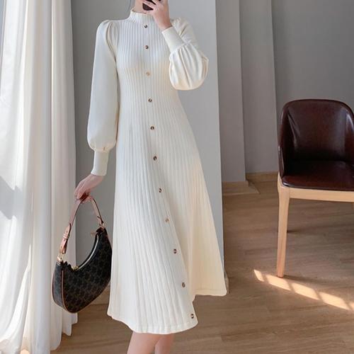 KARRA 프렌치리브드하이넥니트원피스_A3F0345