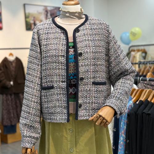 [샤틴]라인배색 트위드 자켓 (253K163)DG