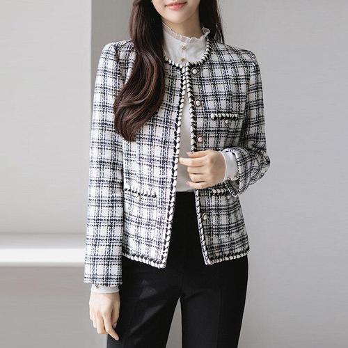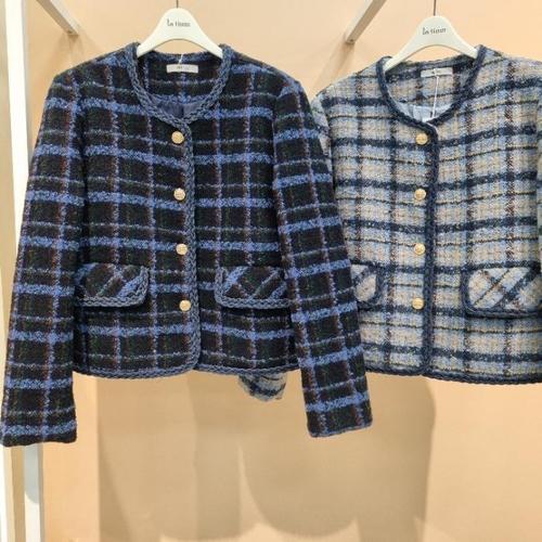 [라티움]라티움 HC34 트위드자켓 가을 초겨울 띠 배색라인 노카라 체크트위드 자켓 T2541kk02 (41362545)