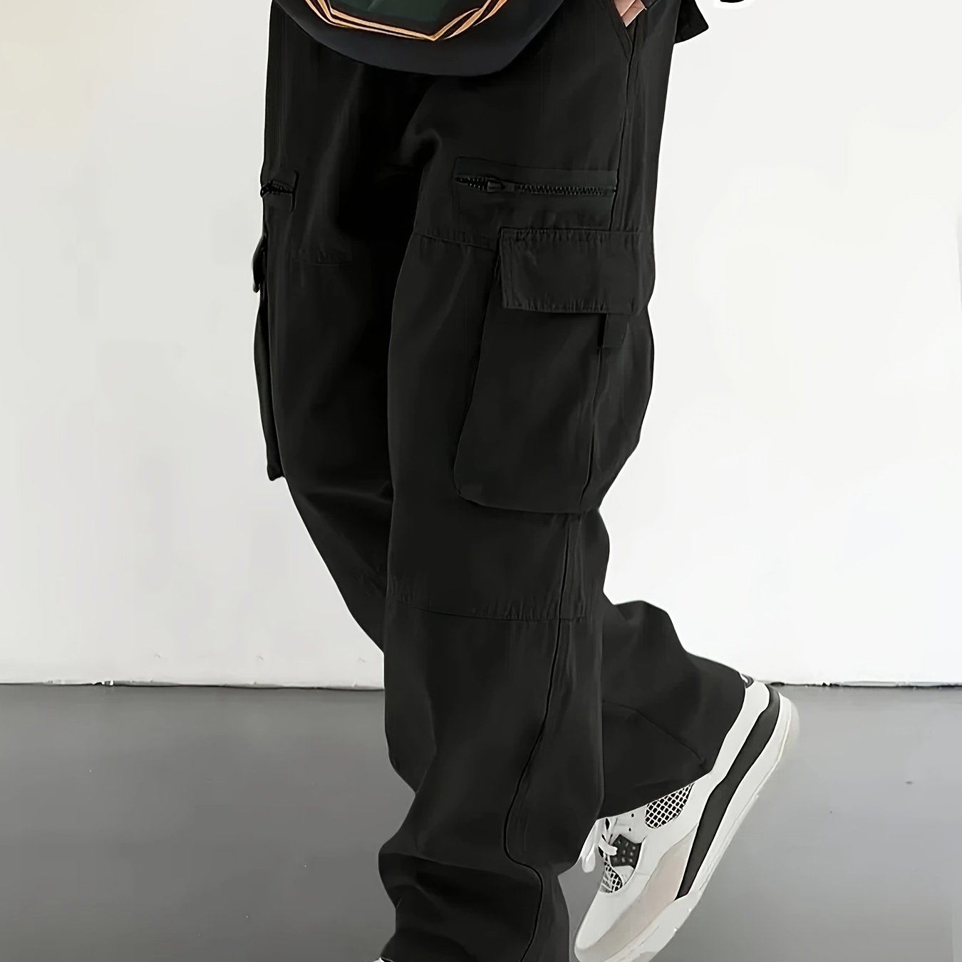 TEMU 트렌디한 단색 카고 바지, 남성용 멀티 플랩 포켓 바지, 루즈하고 캐주얼한 야외용 바지, 남성용 작업 바지 야외 테크웨어 힙합 스타일