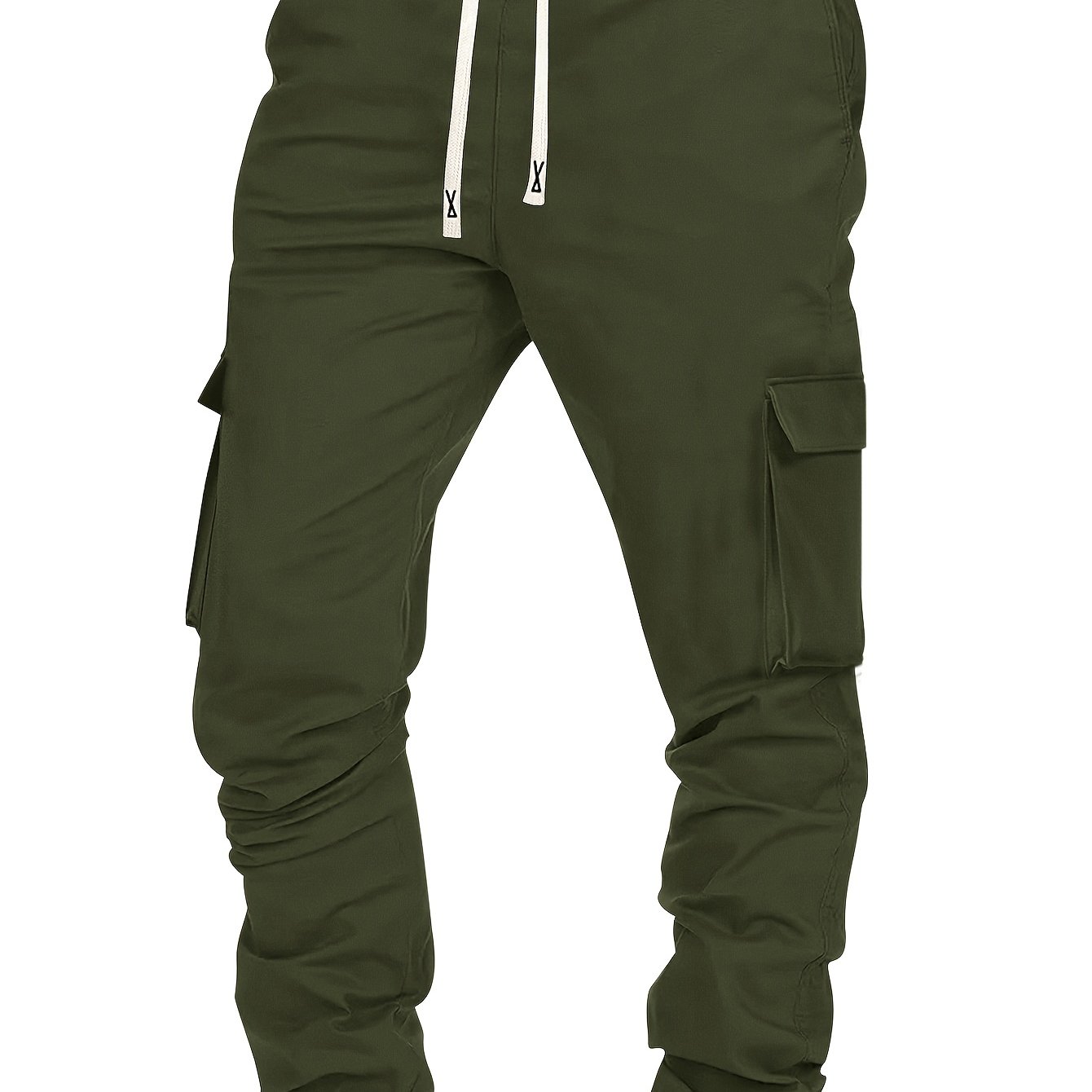 TEMU 남성용 가을/겨울 카고 바지, 다중 포켓, 단색, 탄성 허리 밴드, 드로스트링, 하렘 스타일, 편안함, 스타일리시, 캐주얼 조거 팬츠 (스포츠용)