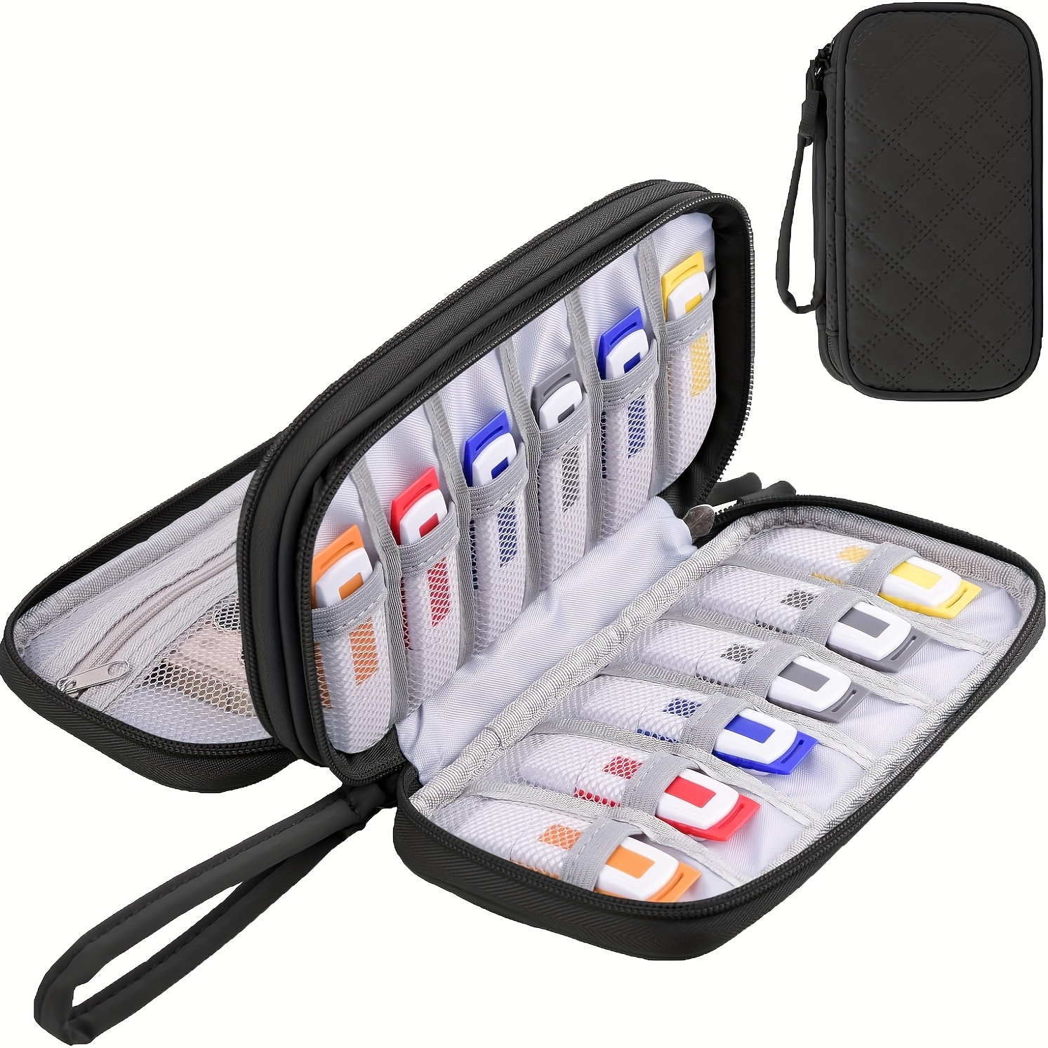 TEMU 18구 USB 플래시 드라이브 정리함 - 휴대용 보관 가방, SD 카드, 플래시 드라이브 및 SD 카드에 적합, 지퍼 잠금 장치가 있는 내구성 있는 폴리에스터 소재, 여행 및 사무실 사용을 위한 컴팩트한 디자인, 여행용 보관 솔루션 | 재봉 텍스처 디자인 |