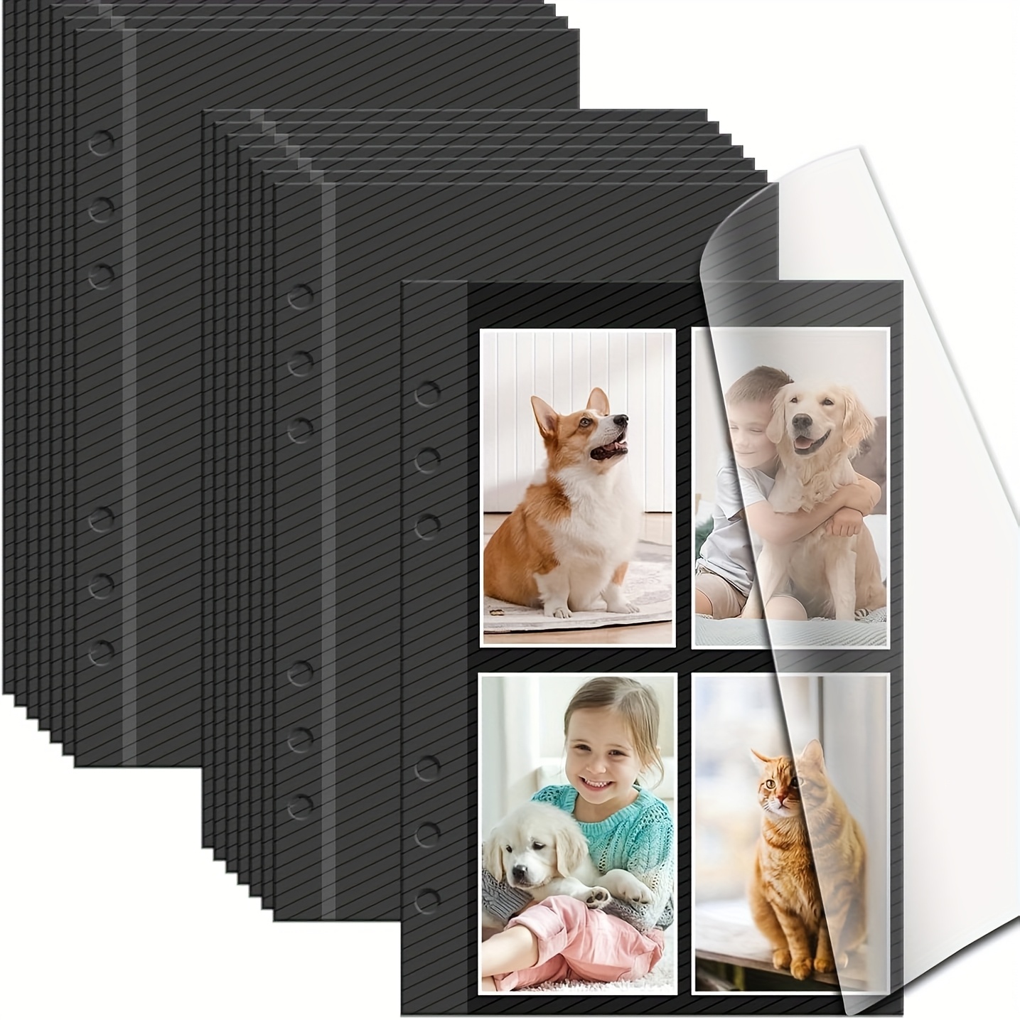 TEMU 리필 가능한 스크랩북 앨범 페이지, 6링 바인더 포함, 15장 자체 접착 시트, 2x3, 4x6, 5x7 사진 호환