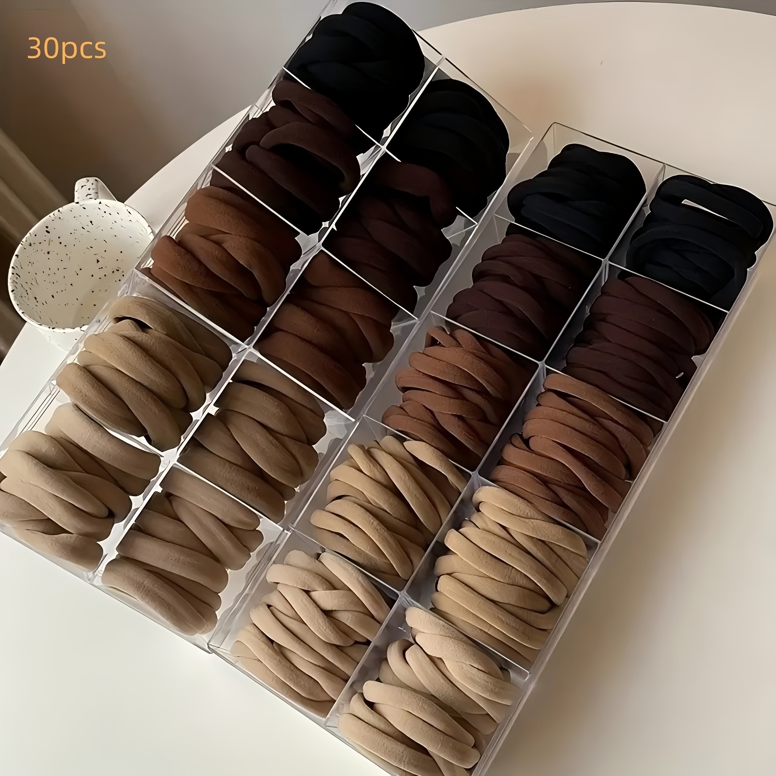 TEMU 30개 혼합 컬러 심플 스타일 헤어 타이, 미끄럼 방지 탄력성 머리띠, 여성용 일상용 내구성 있는 4mm 포니테일 홀더