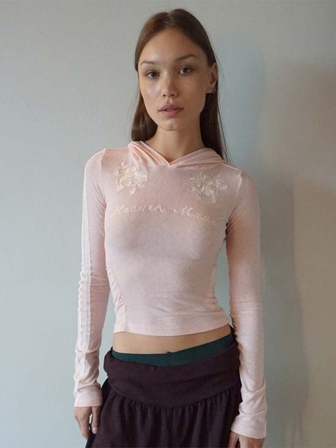 [스컬프터] Rose Angora Hoodie Tee Peach Fuzz