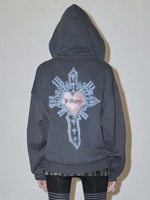 [스컬프터] Beaded Saint Hoodie Zip-Up Charcoal