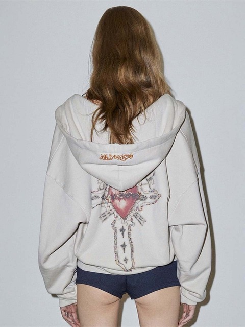 [스컬프터] Beaded Saint Hoodie Zip-Up Dirty White