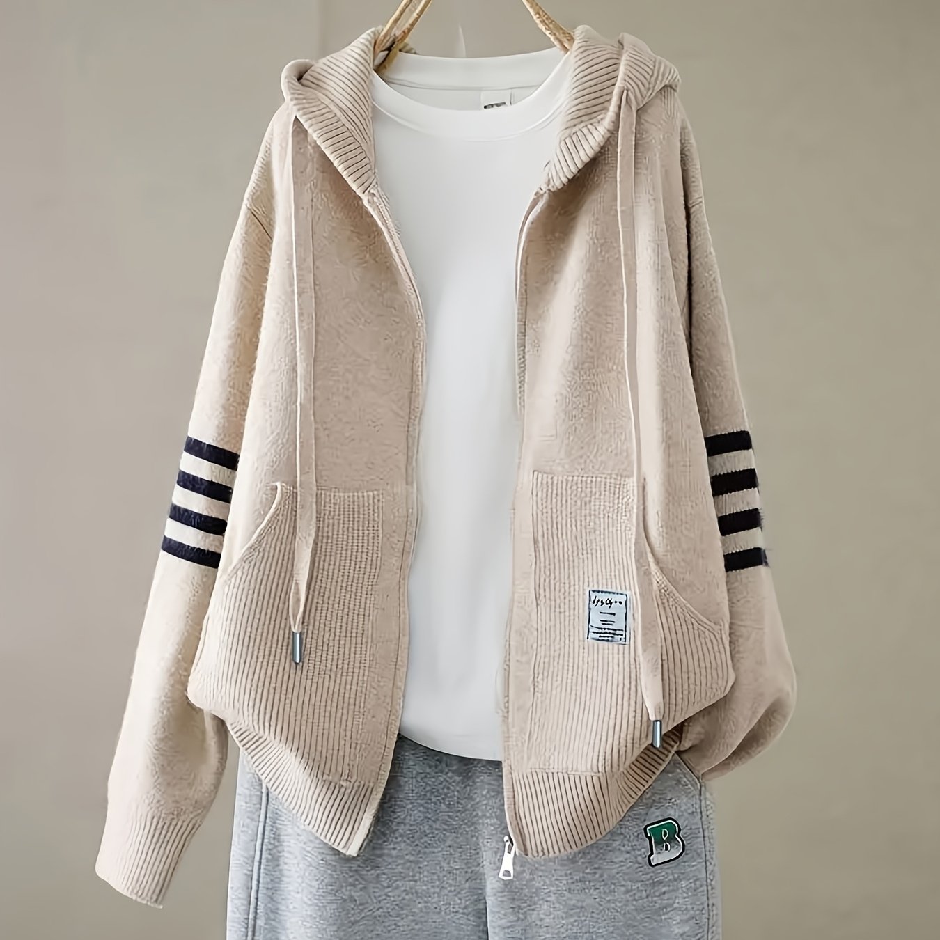 TEMU 여성 캐주얼 후드 가디건 디자인 - &, 긴소매, 지퍼업, 루즈핏, 가을/겨울 겉옷, 캐주얼 겉옷, 포근한 가디건