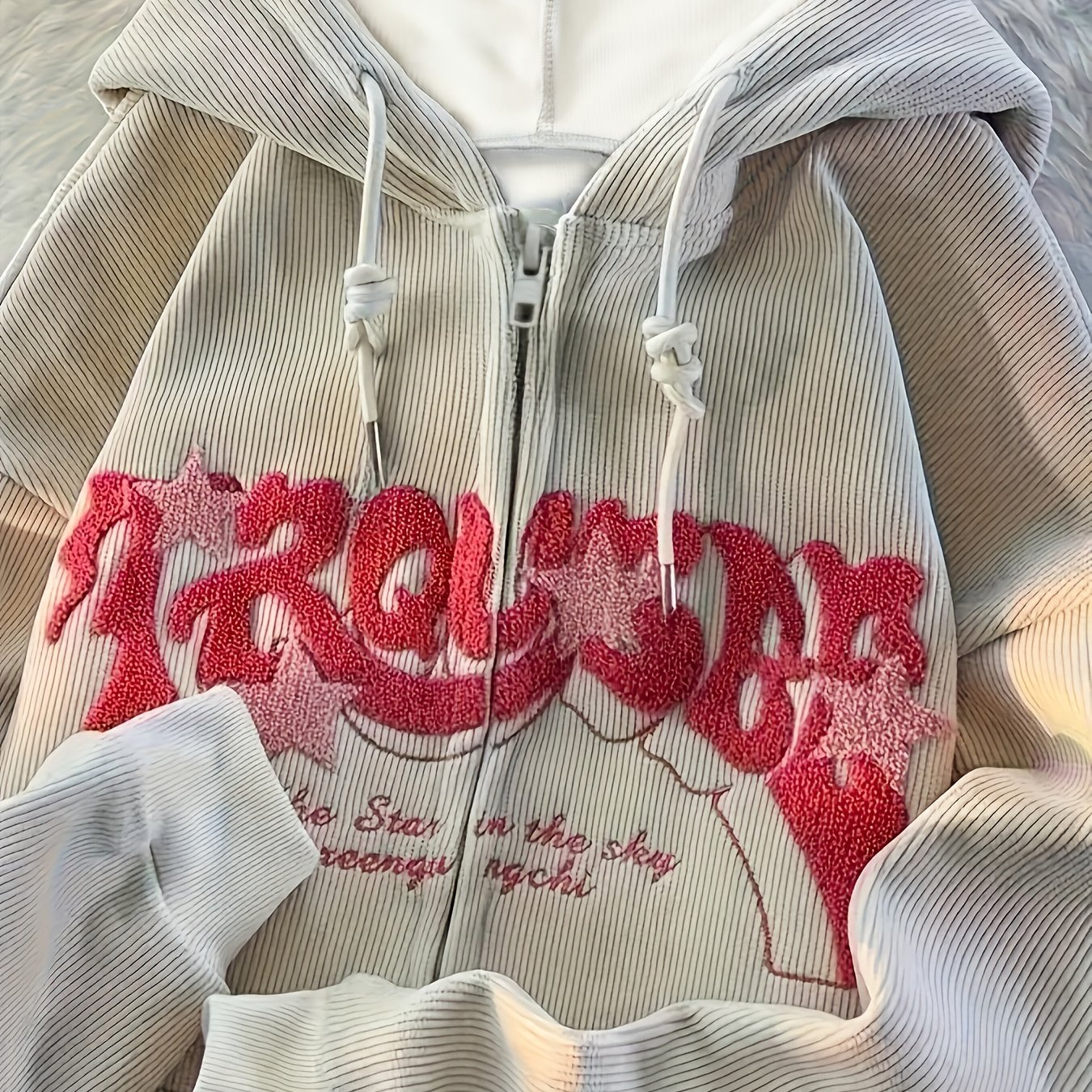 TEMU 그런지 드롭 숄더 후드 가디건, 봄 & 가을용 Y2K 긴 소매 지퍼 업 가디건, 여성 의류