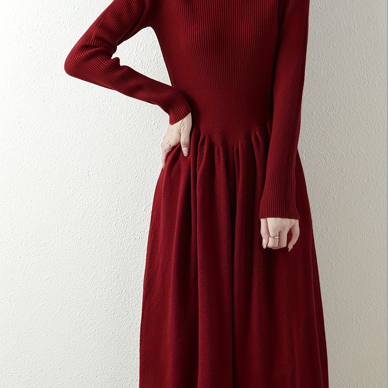 TEMU 하이넥 롱슬리브 드레스, 여성용 가을 겨울 신상 웨이스트 트리밍 우아한 멀티숏 드레스