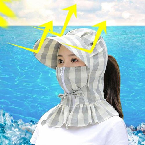 프릴체크 햇빛차단 여자 썬캡 얼굴 안면마스크 WEE91A3