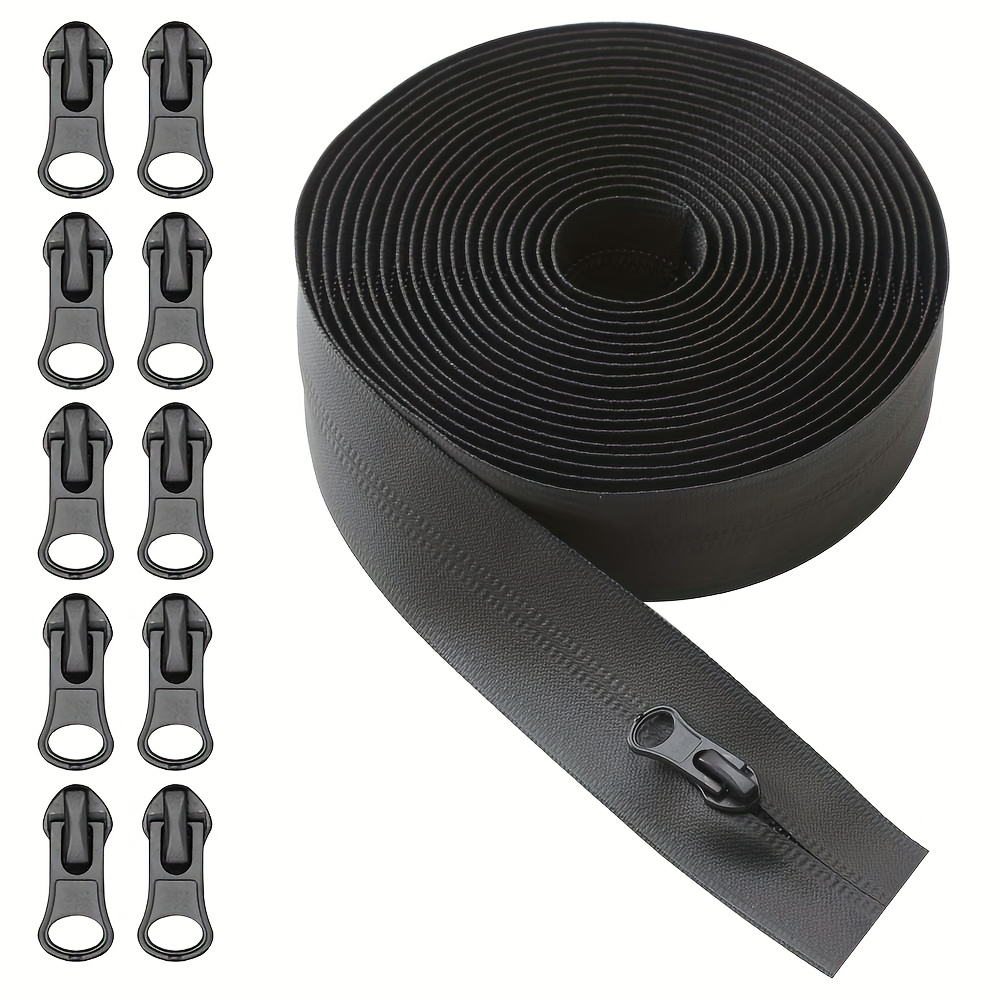 TEMU 5야드 블랙 방수 나일론 지퍼 세트 (4.5미터, 177.17인치). 슬라이더 10개 포함. 리버스 컬링 디자인으로 아웃도어 프로젝트, 등산 재킷, 텐트, 여행 가방 및 케이스에 적합