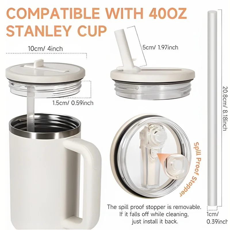 40온스 플립 스트로우 누수 방지 뚜껑, 2.0 텀블러용 뚜껑 교체품, 스탠리 컵 액세서리, 스트로우 커버, 청소 브러시 포함