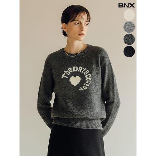 [BNX]여성 울 혼방 하트 라운드 니트