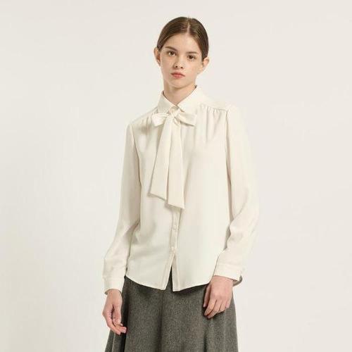 [LBL] 실크혼방 루즈핏 타이 블라우스 데일리 룩