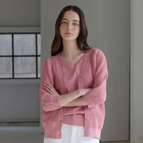[마리본]코튼 블렌딩 크로셰 가디건 니트탑 블라우스 SET