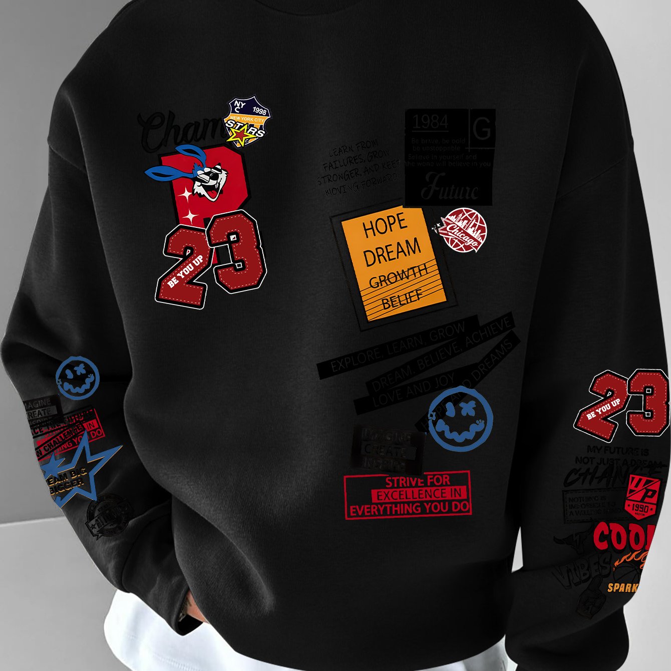TEMU 남성용 빈티지 23 & 레트로 넘버 블록 콜라주 스웨트셔츠 - 루즈핏 라운드넥 스웨터, 세탁기 사용 가능 캐주얼 풀오버, 스트리트웨어, 의상 및 80/90년대 테마 이벤트용 (벌크 없음)