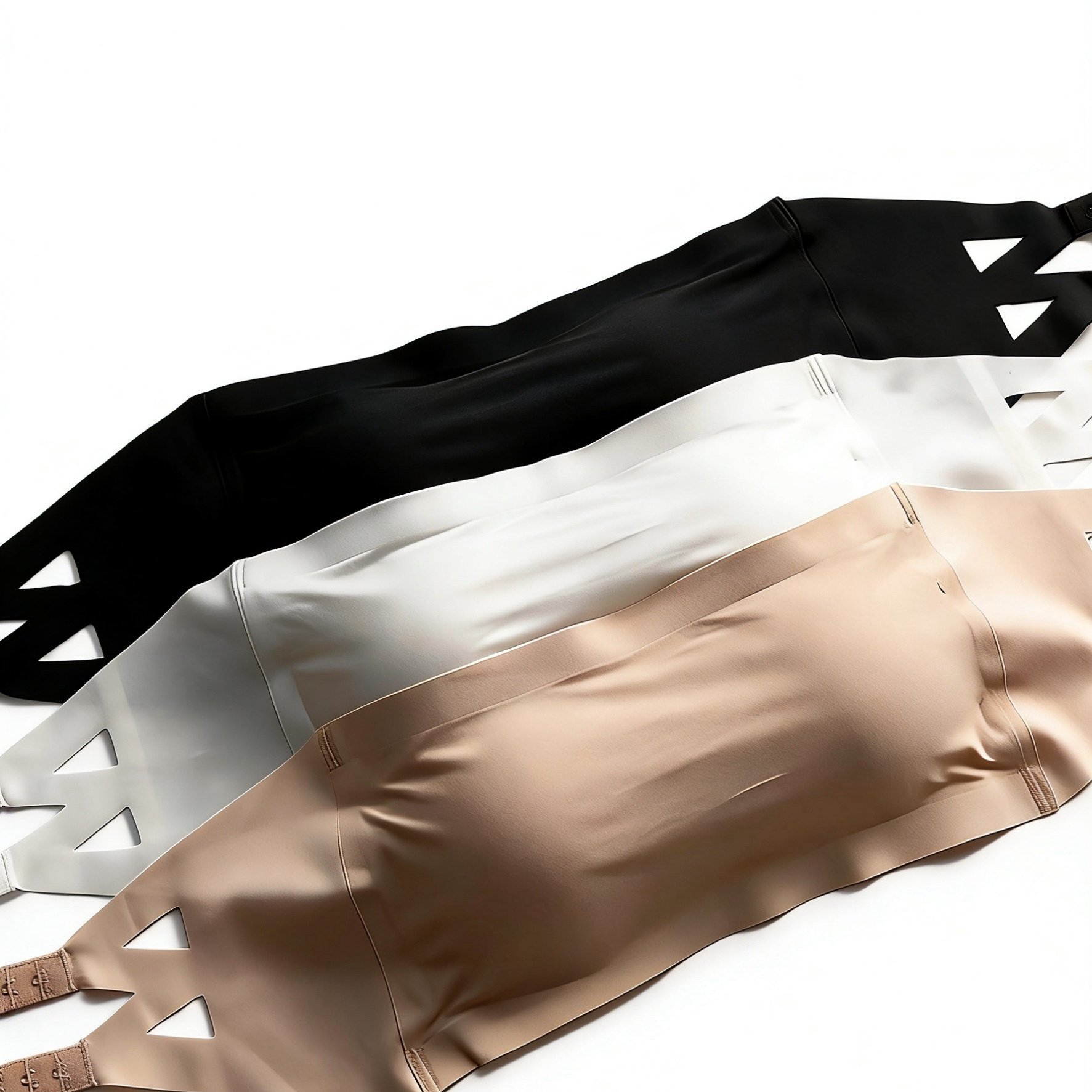 TEMU 3개입 스트랩리스 오프숄더 & 속옷 세트 - 접착/패치 패드, 등받이 지원, 컵 커버리지 (12.5cm), 세탁기 사용 가능, 14-17세 청소년용, 봄 여름 가을, 청소년용