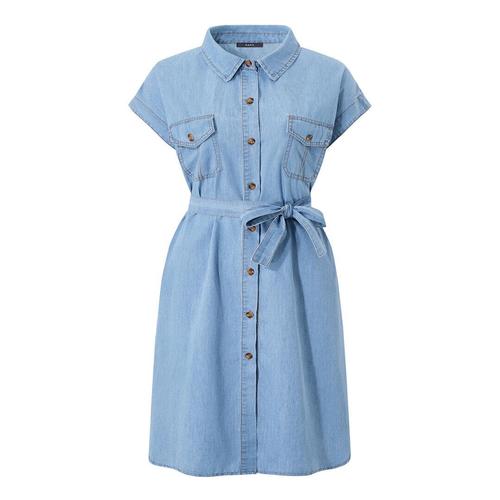 빅사이즈 여성 봄여름 반팔 슬림핏 원피스 통기성 쿨링 스트랩 롱 얇은 텐셀 데님원피스