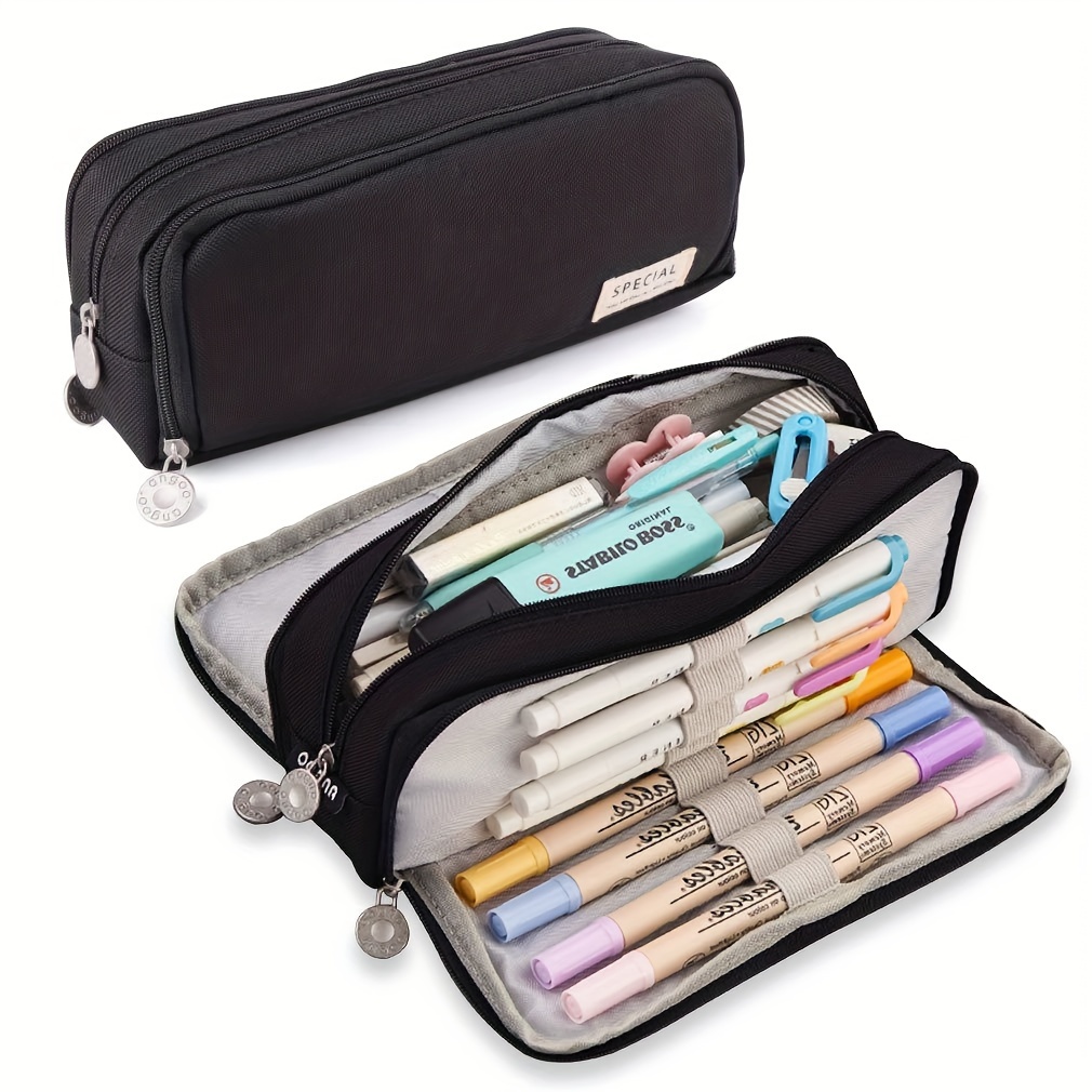 TEMU 세련된 3단 대용량 필통 1개 | 다기능 옥스포드 원단 이중 지퍼 필통, 학생 및 사무실 책상 필수 수납 솔루션, 신학기 선물