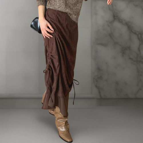 [다잇템][다잇템] 여성 H라인.롱 골덴 포인트 잔주름 스커트_23889691_588872