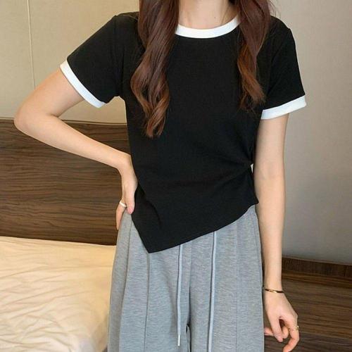 여성용 여름 반팔 배색 티셔츠 셔링 포인트 일상룩 WFL959H
