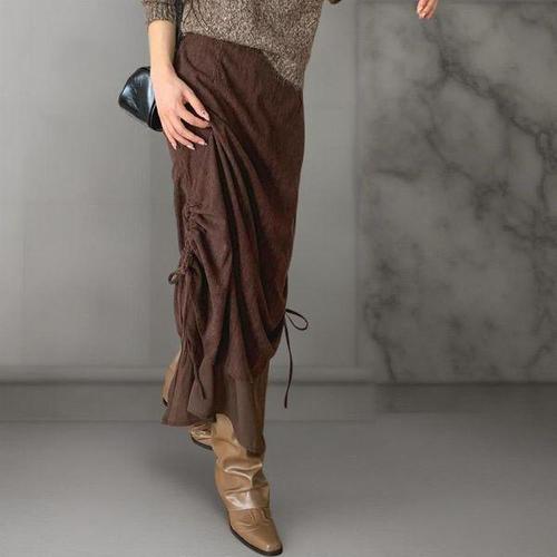 [옷자락]여성 코듀로이 포인트 H라인 롱 스커트