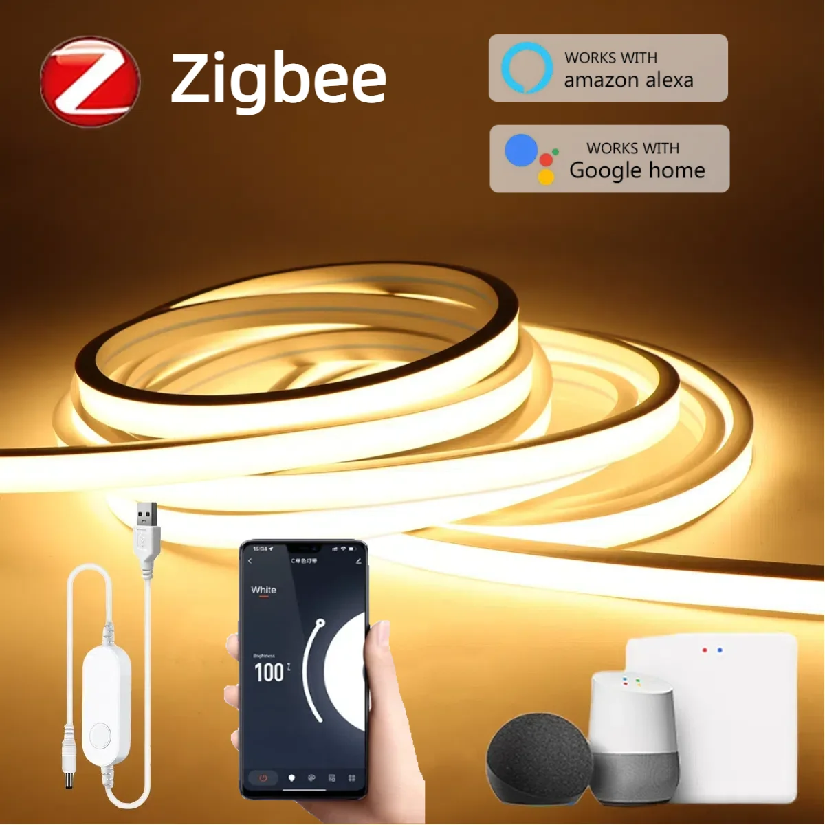 Zigbee 스마트 COB 네온 스트립 라이트 320LED/M USB 5V Zigbee 컨트롤러로 높은 밝기 Alexa Google 홈 APP 음성 제어