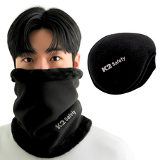 K2 safety 듀얼 넥워머 + K2맥스 귀마개 방한용품 넥게이터 귀도리, K2듀얼넥_블랙+K2맥스귀마개_블랙, 1세트