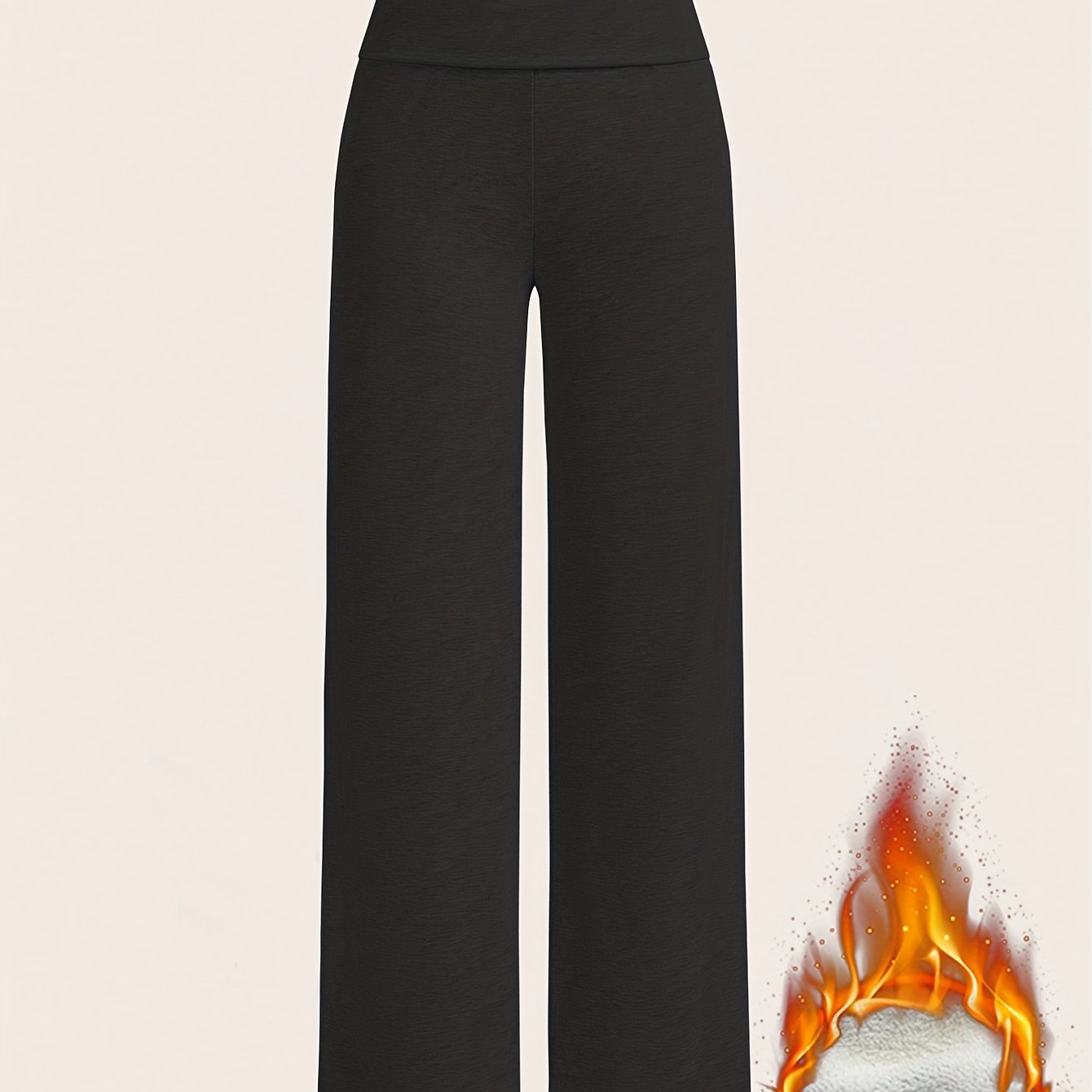 TEMU 여성용 겨울용 두꺼운 하이웨이스트 팬츠 (탄성 허리 밴드 및 플러시 안감), 우아함, 편안함, 따뜻함을 제공하며, 일상적인 출퇴근 또는 홈웨어에 적합