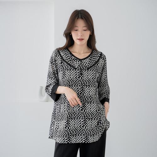 엄마옷 마담4060 삼각카라나염블라우스 -QBL2604023-