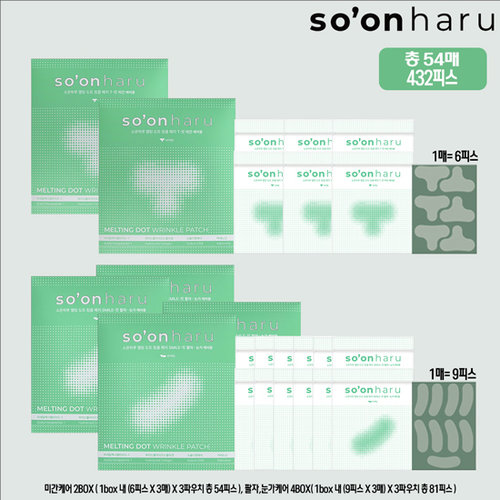 [주름탄력패치]소온하루 멜팅 도트 링클 패치 스페셜 패키지((미간패치) 2박스 X (팔자/눈가) 4박스 총 432피스)