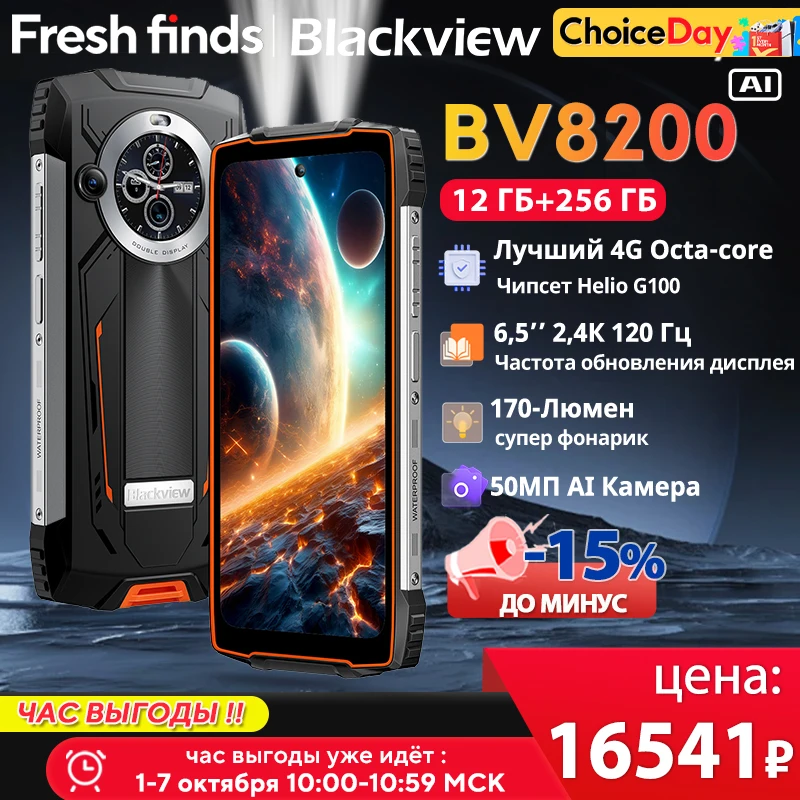 【세계 최초 공개】Blackview BV8200 견고한 휴대전화 6.5" 2.4K 120Hz 디스플레이 Helio G100 NFC12GB 256GB 45W 충전기 안드로이드 14 휴대전화