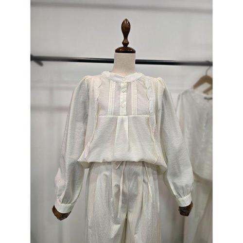 엘리몬드 F6400 손목 주름 화이트 카라 블라우스 코디 출근룩
