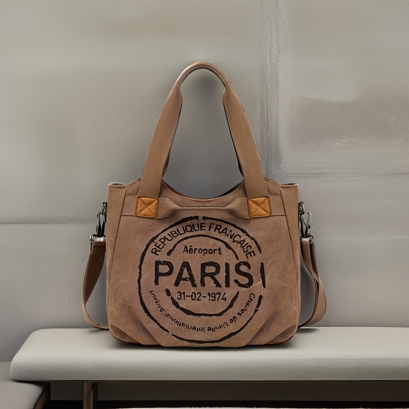 TEMU 레터 프린트 대용량 여성 숄더 & 크로스백 빈티지 캔버스 가방